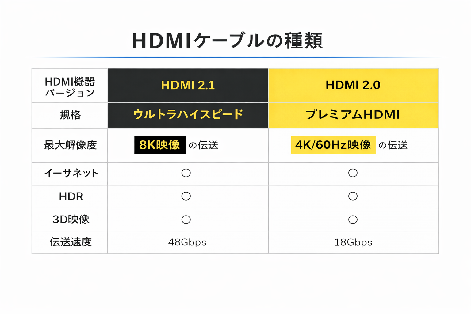 ■8K/60p、4K/120p対応 48Gbpsの高速伝送で8K/60p※ 、4K/120pなどの超高画質映像を対応機器でお楽しみいただけます。また、従来のFull HDなどの解像度にも対応しており、幅広い機器でご使用が可能です。