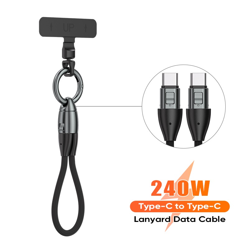 ・タイプC -タイプC PD240W ストラップ型 データ・充電ケーブル 14cm
