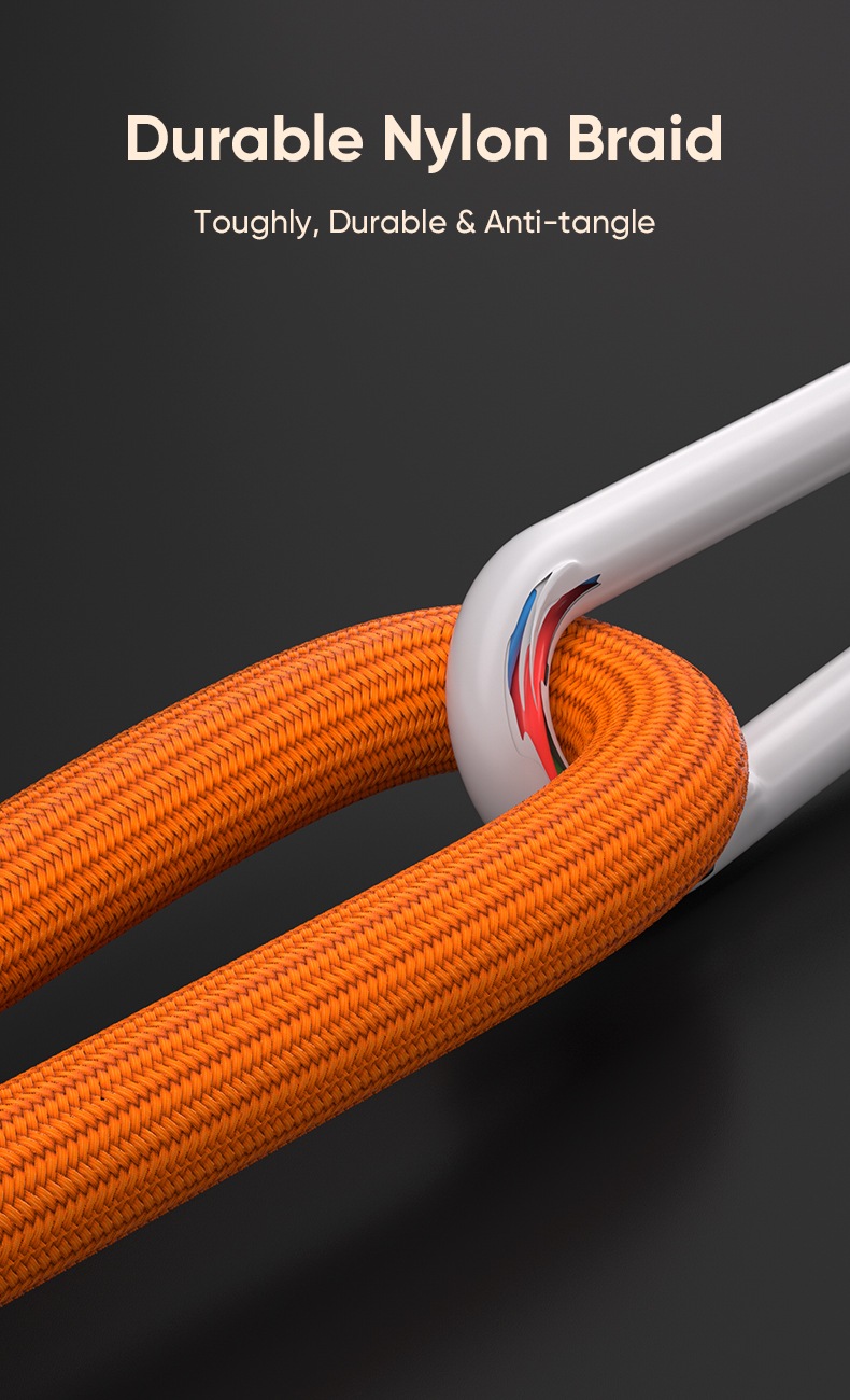 ・素材: 頑丈なナイロンメッシュ構造+亜鉛合金ヘッド ケーブル、高耐久・絡みにくい