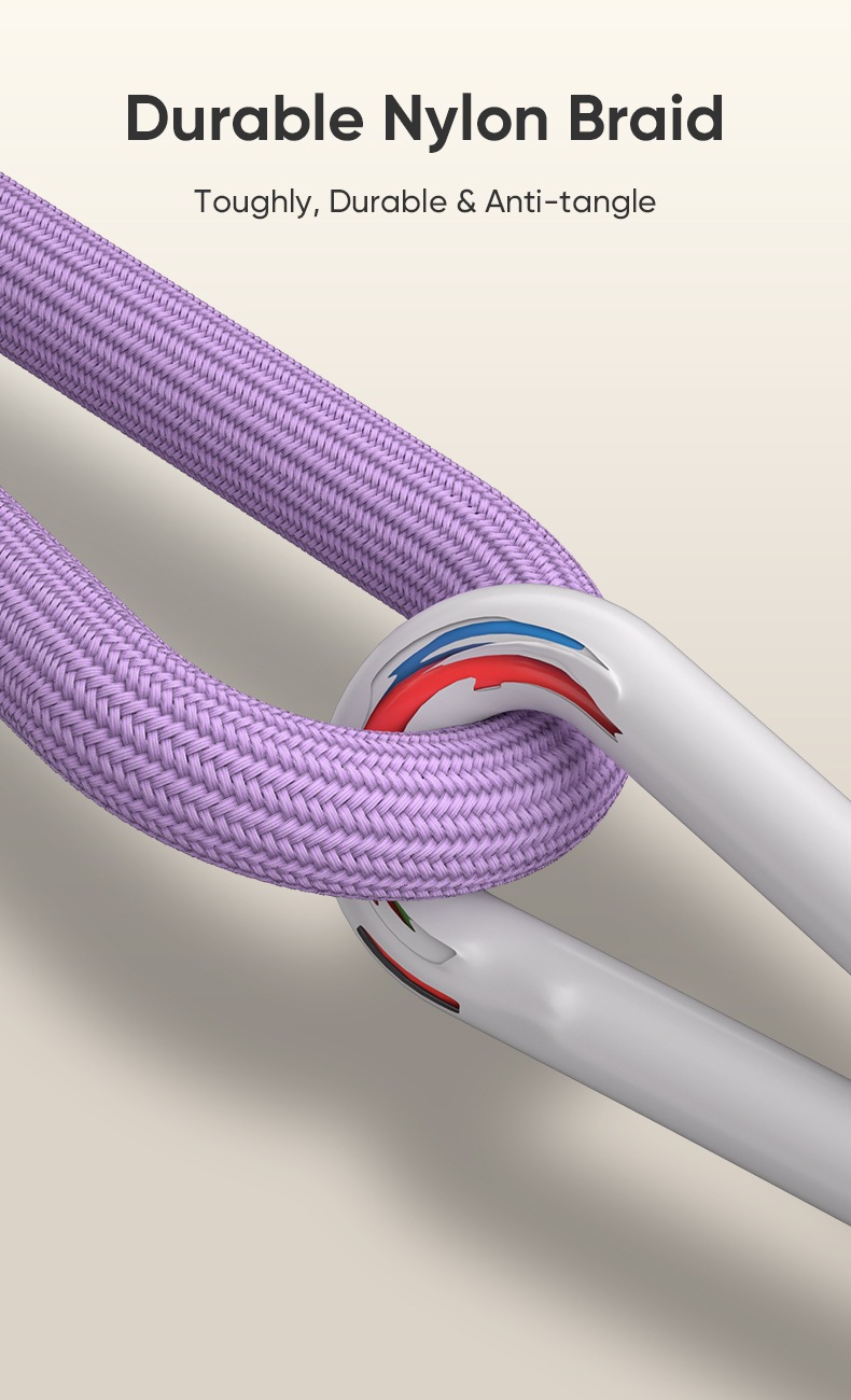 ・素材: 頑丈なナイロンメッシュ構造+亜鉛合金ヘッド ケーブル、高耐久・絡みにくい