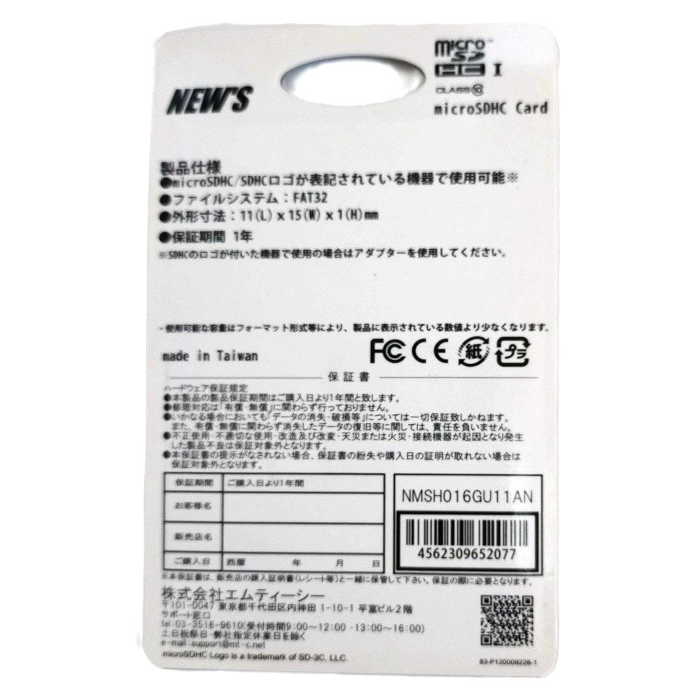 NEW'S Flash memory microSDHCカード16GB Class10