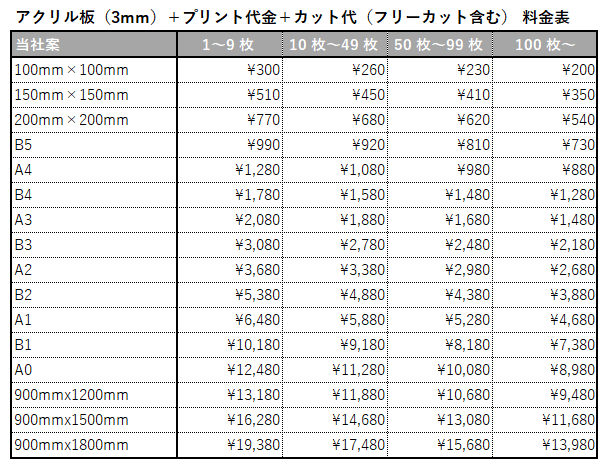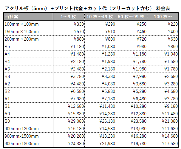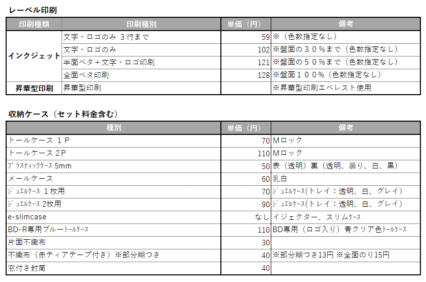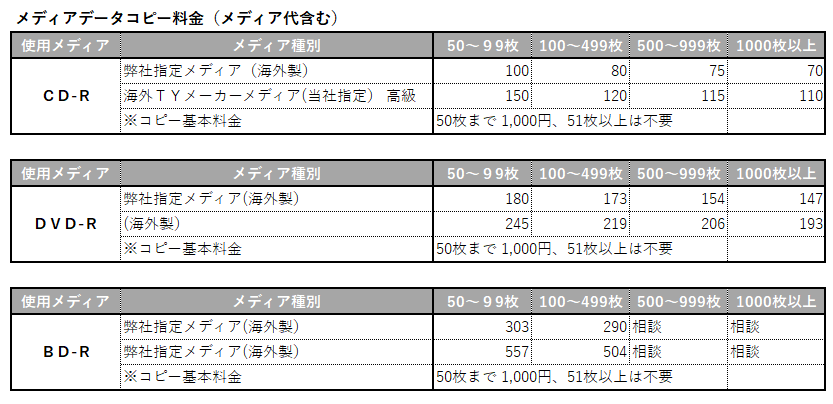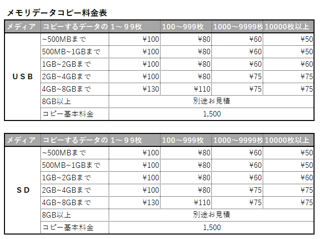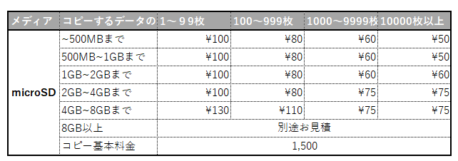 コピーサービス商品料金表